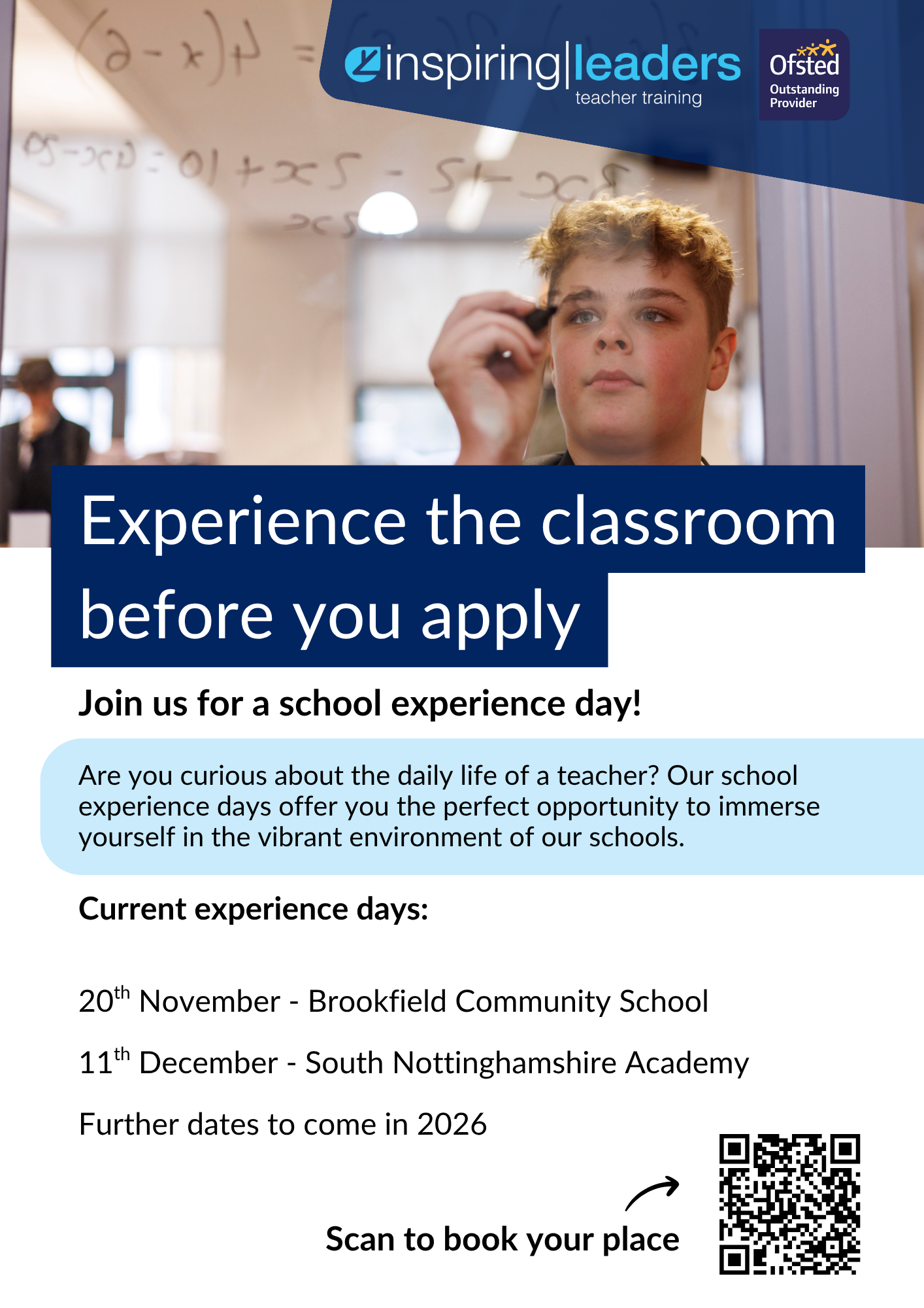 South Nottinghamshire Academy's experience day is on 11th December 2026. Please see the poster below for more details.